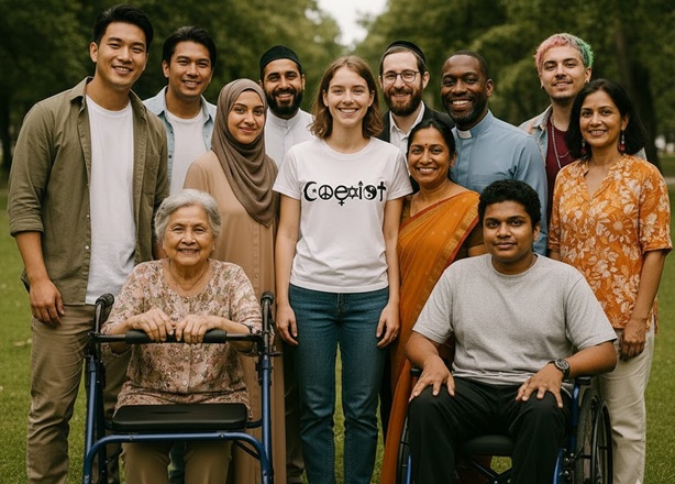 We’ve all seen it, that little optimistic flag of harmony, the COEXIST bumper sticker. C, the Crescent Moon and Star of Islam; O, the sign of peace; E, the equality of genders; X, the Star of David, representing Judaism; I, with the wicca pentacle, representing Pagan religions; S, the intertwined Yin and Yang of Buddhism and T, Christianity’s simple cross.