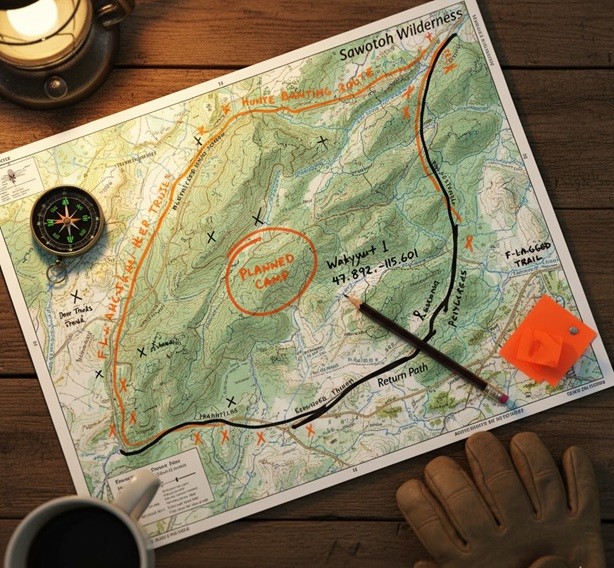 - Navigational Sketch: Mentally or physically sketch out your route, noting prominent features like ridges, drainages and clearings that will lead you back to known terrain. Photographing key waypoints may help you backtrack if visibility drops or you need to locate your camp or stand after you’ve gone off trail.