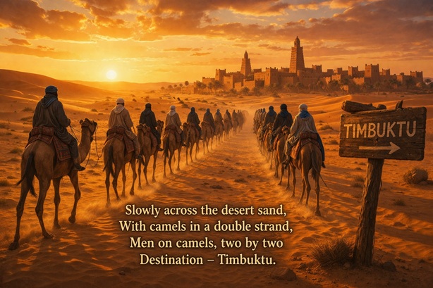 To Timbuktu, their destination grand,